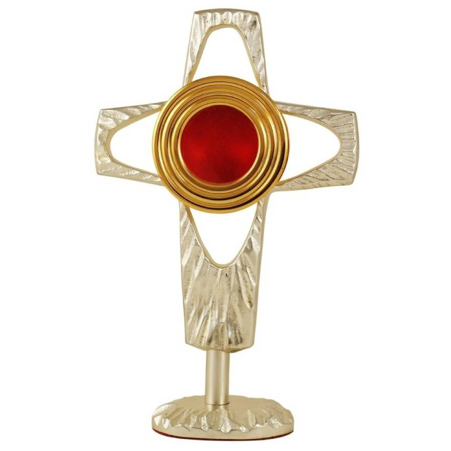 Gilded brass reliquary in the shape of a cross,available in three colors: gold, silver or patinated silver. The reliquary was made with great care. It contains numerous ornaments and embossing, and has been polished which gives it an extra shine.