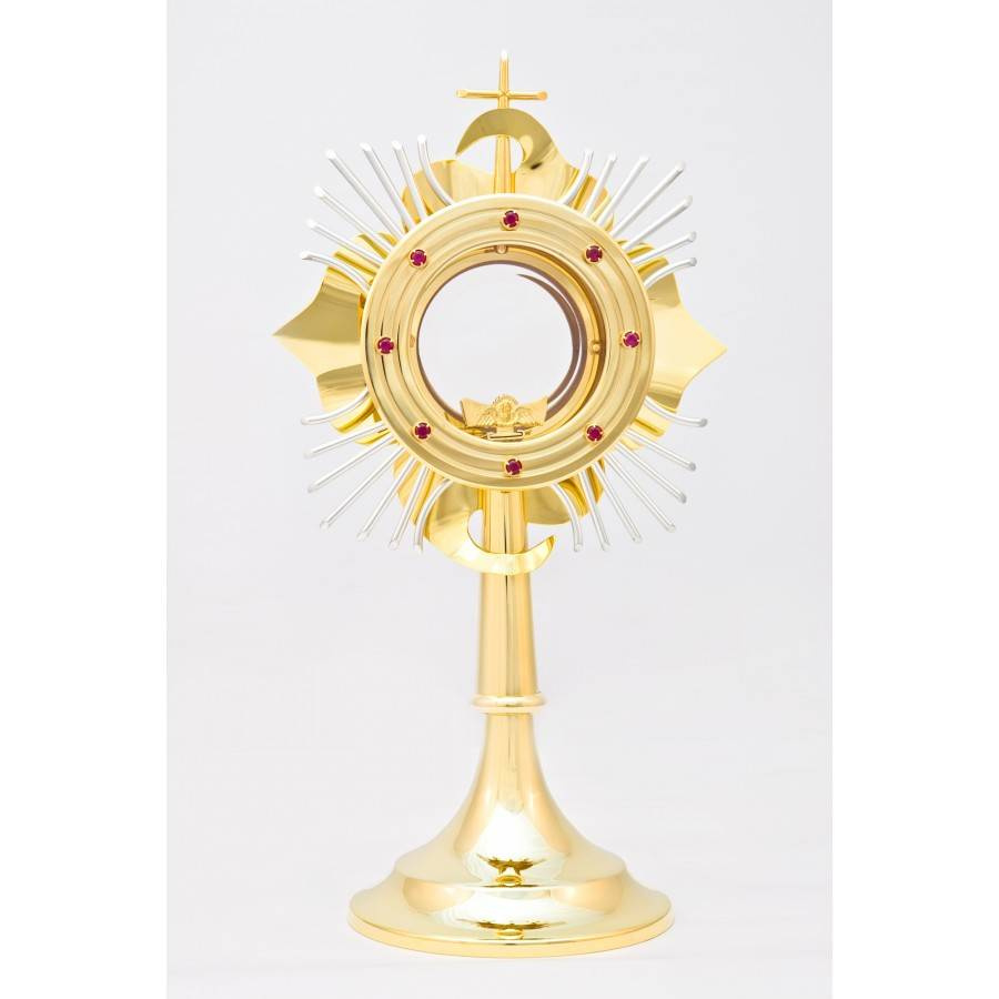 Gilded monstrance decorated with rubies and silver rays.Melchizedek included. The monstrance is dedicated to hosts with a diameter of 7 cm.