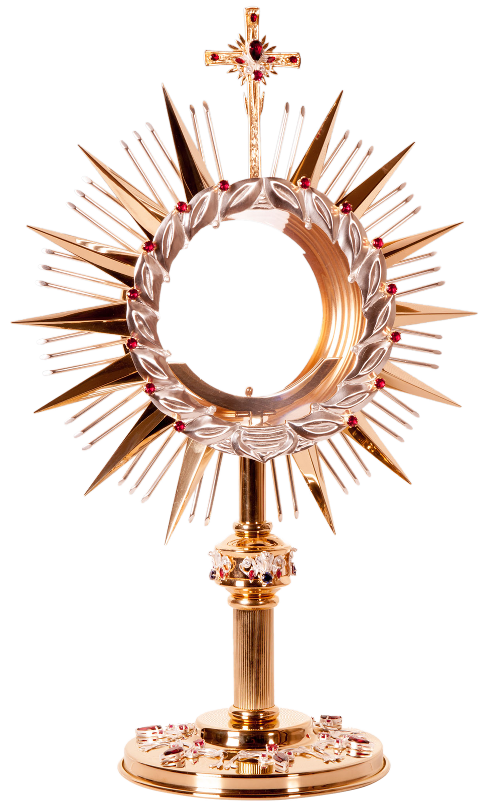 - Gilded monstrance, richly decorated with stones, for a large host, height 60 cm