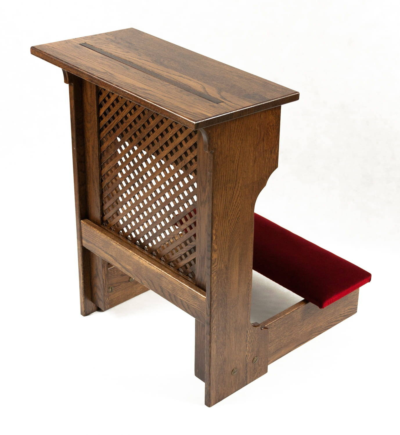 - Kneeler made of oak wood. It has a pull-out grille, so you can easily get a confessional.