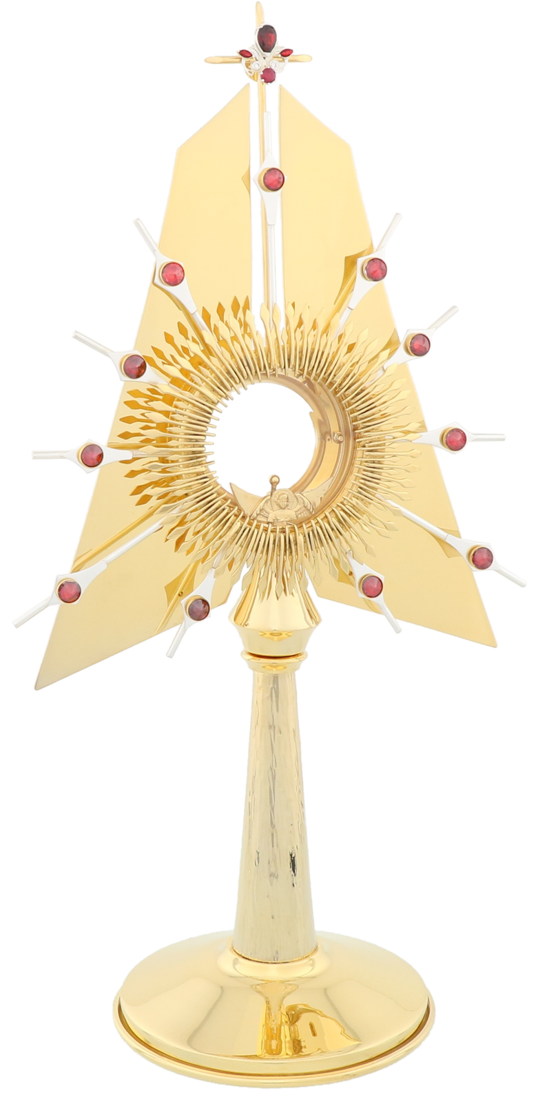 - Monstrance gilded, decorated with rubies and silver rays with a height of 55 cm