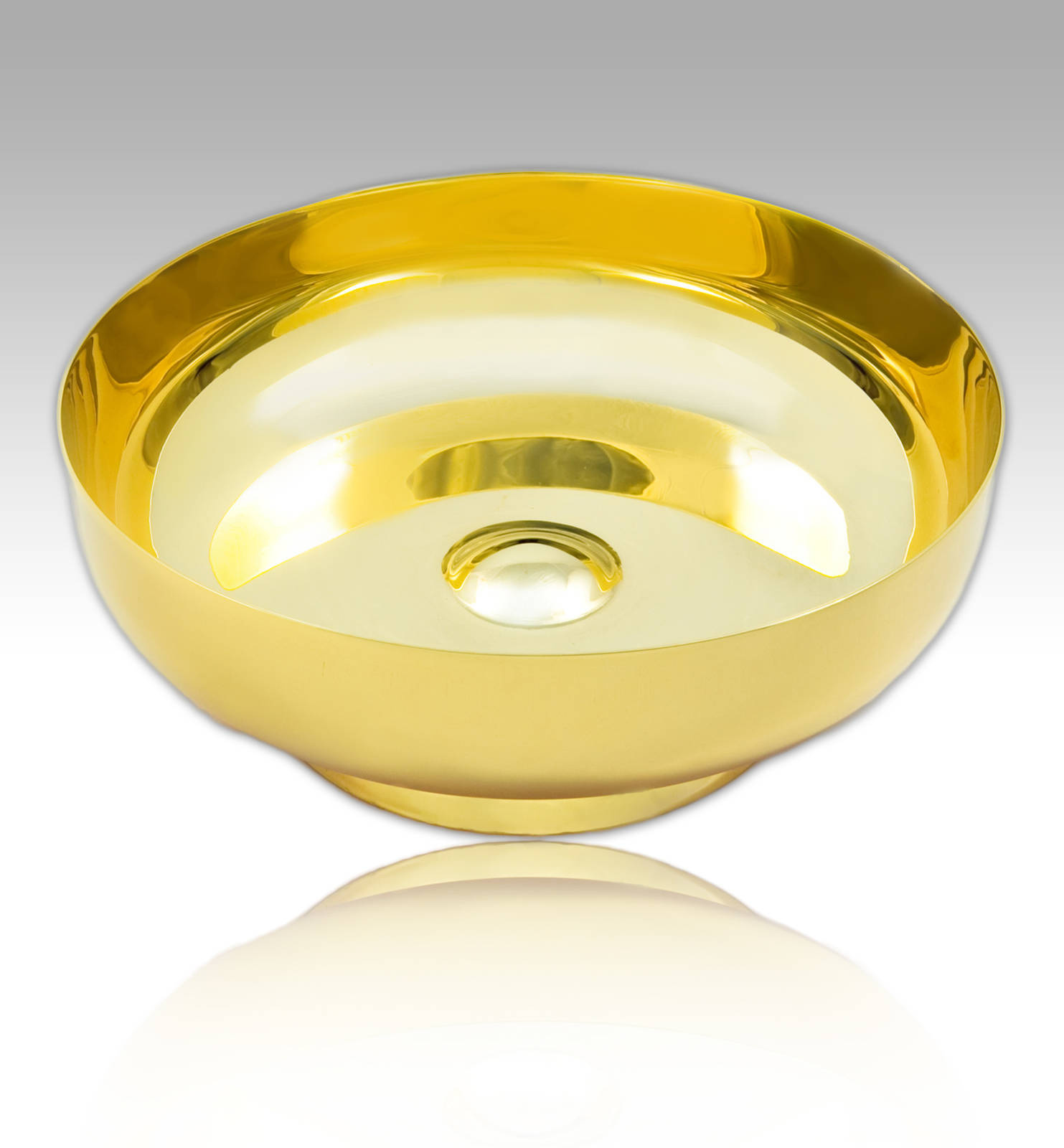 Deep paten made of polished brass, the surface of the paten is gilded, which gives it an extra shine.