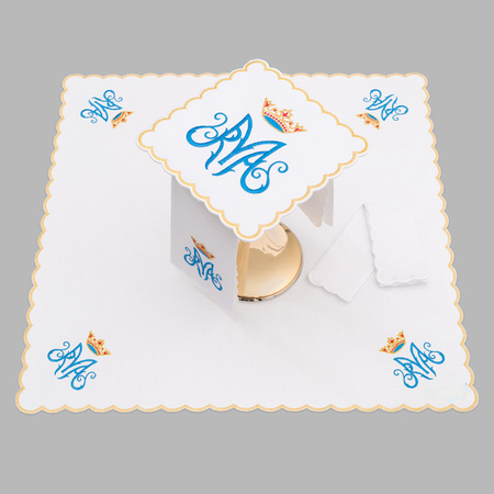 Bielizna kielichowa ołtarzowa wykończona koronką JHS złoty