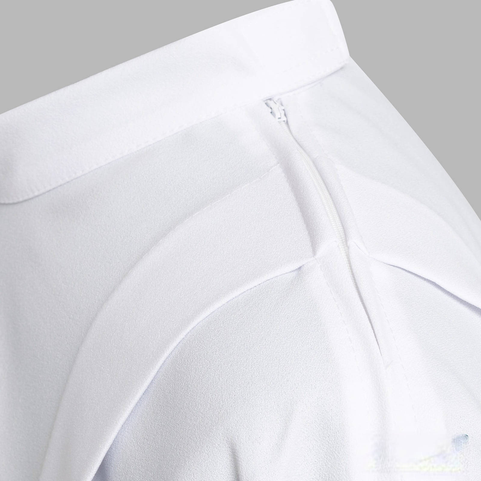 Alba z žoržetu. Má záložky, takže veľmi dobre sedí. Vrchný diel so stojacím golierom a zipsom na ramene. Je zdobená výšivkou richelieu.