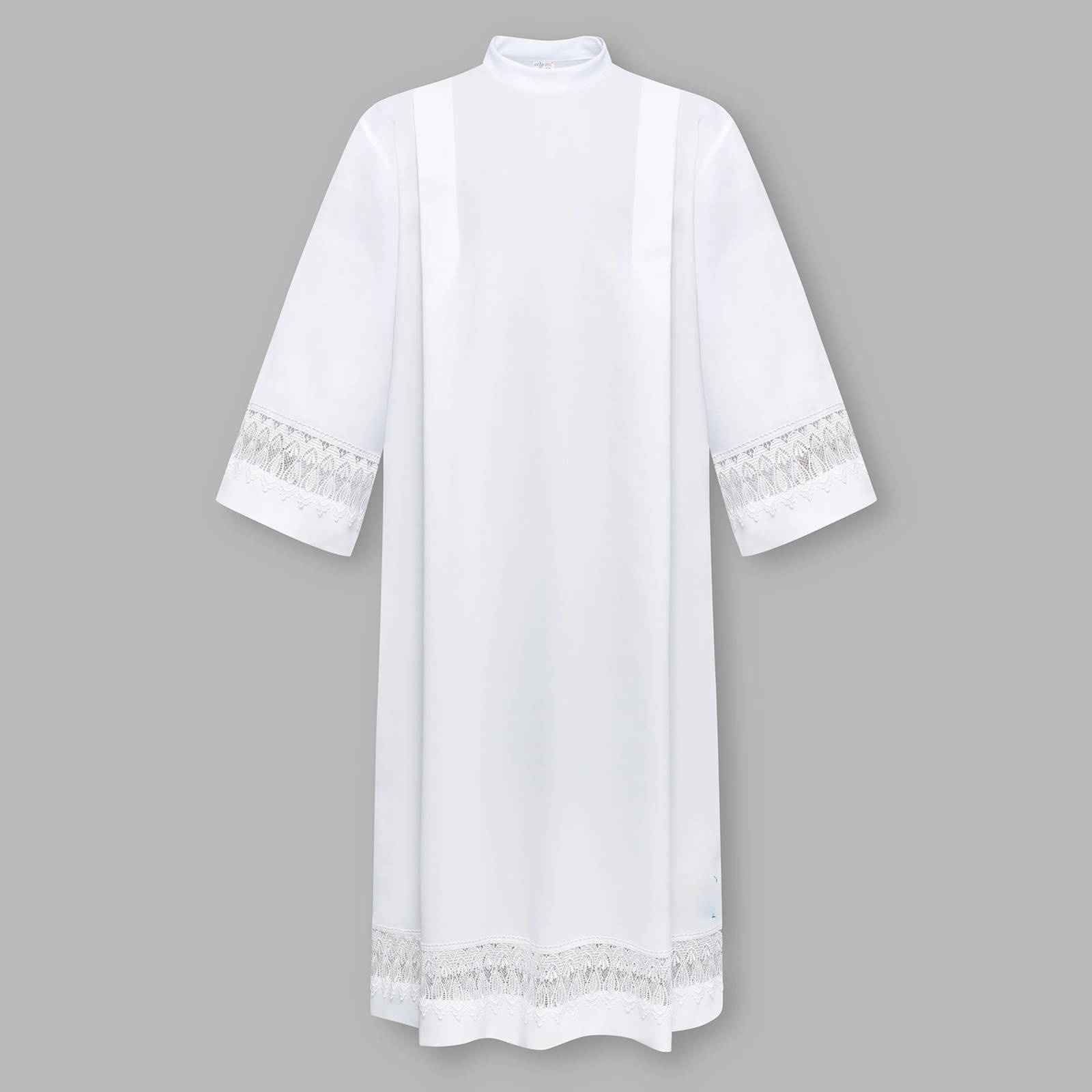Alba z žoržetu. Má záložky, takže veľmi dobre sedí. Vrchný diel so stojatým golierom a zipsom na ramene.