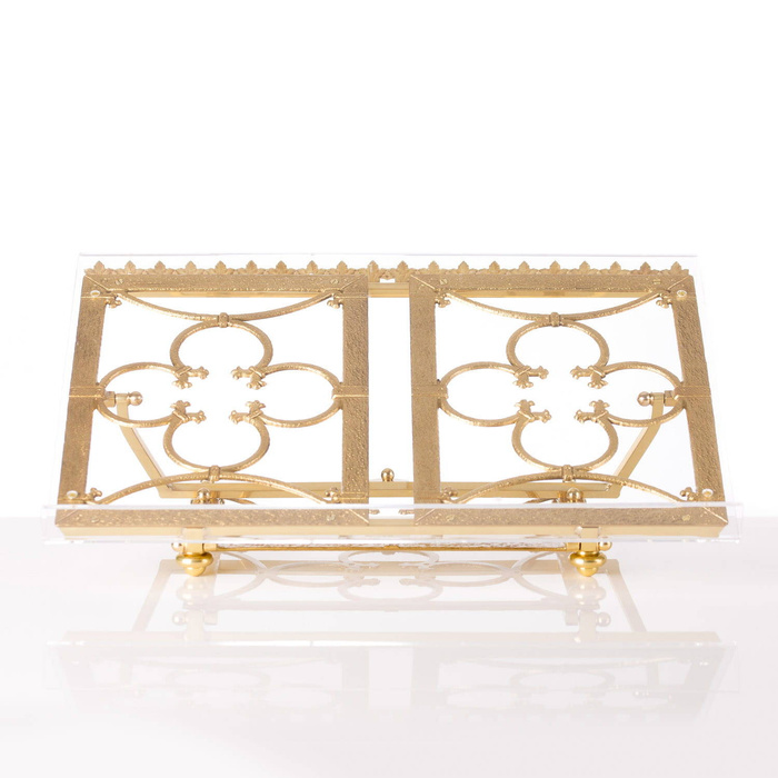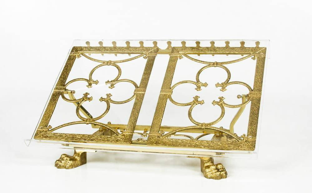Vyrobené z mosadzných odliatkov a akrylového skla. Pracovná plocha s nastaviteľným sklonom.