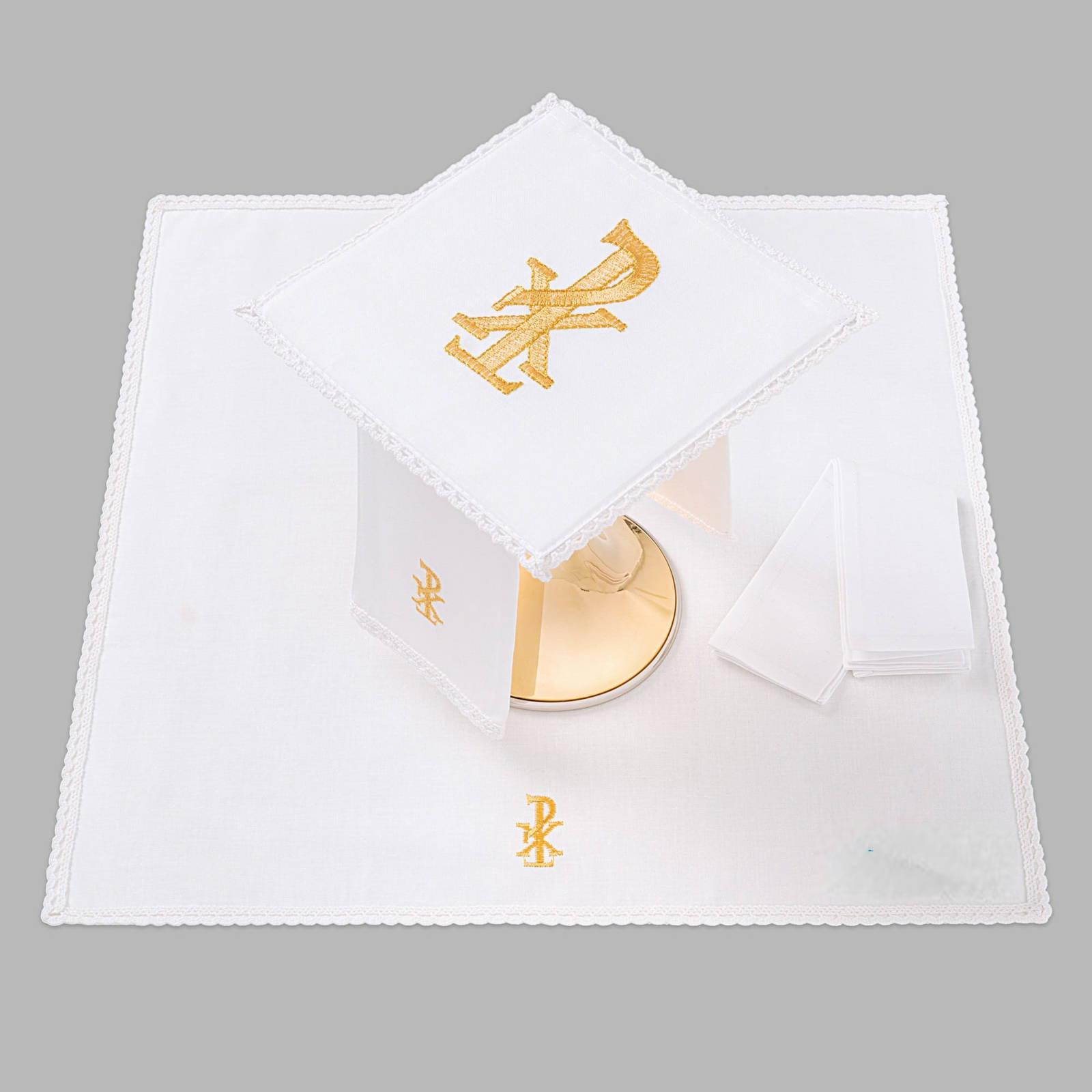Oltárne plátno na kalich zdobené čipkou z vysokokvalitného materiálu.