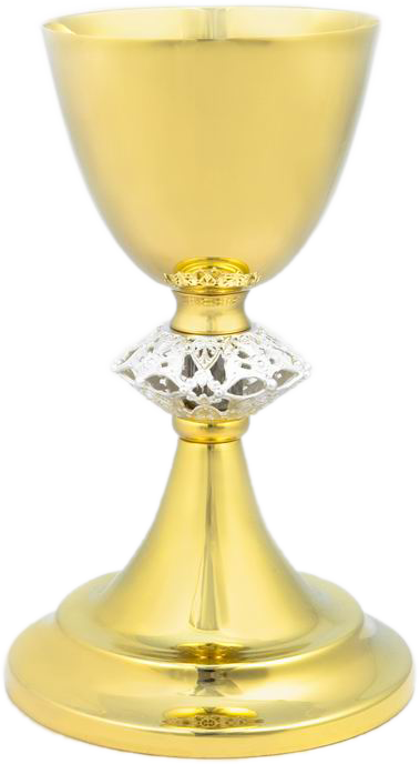 • Pozlátený omšový kalich so strieborným nodusom, vysoký 19 cm